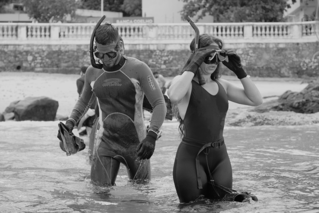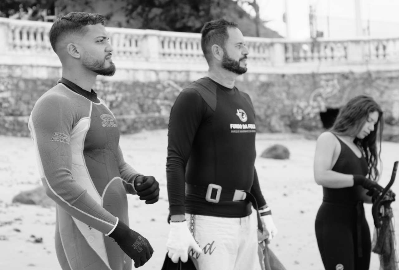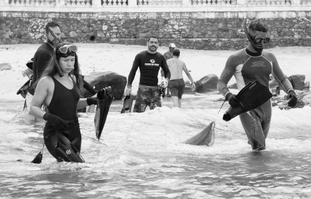 Quando a claridade da água está propícia, o grupo se reúne em busca do lixo urbano desprezado no mar. Em pouco mais de uma hora de mergulho, a trupe sempre retorna com milhares de ítens que poluem a baía.