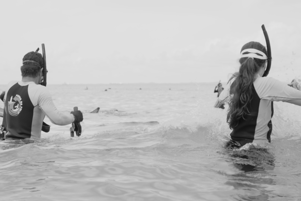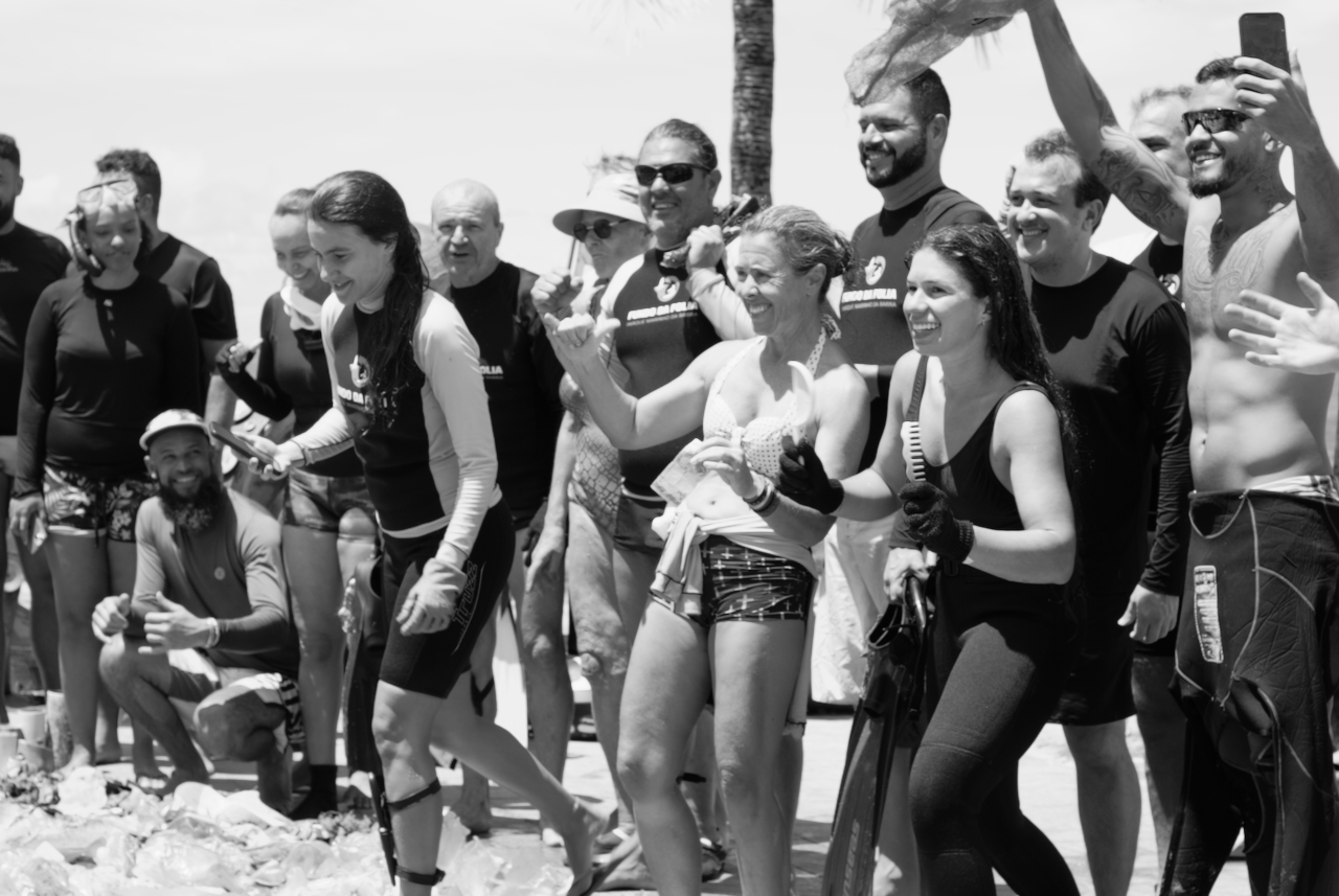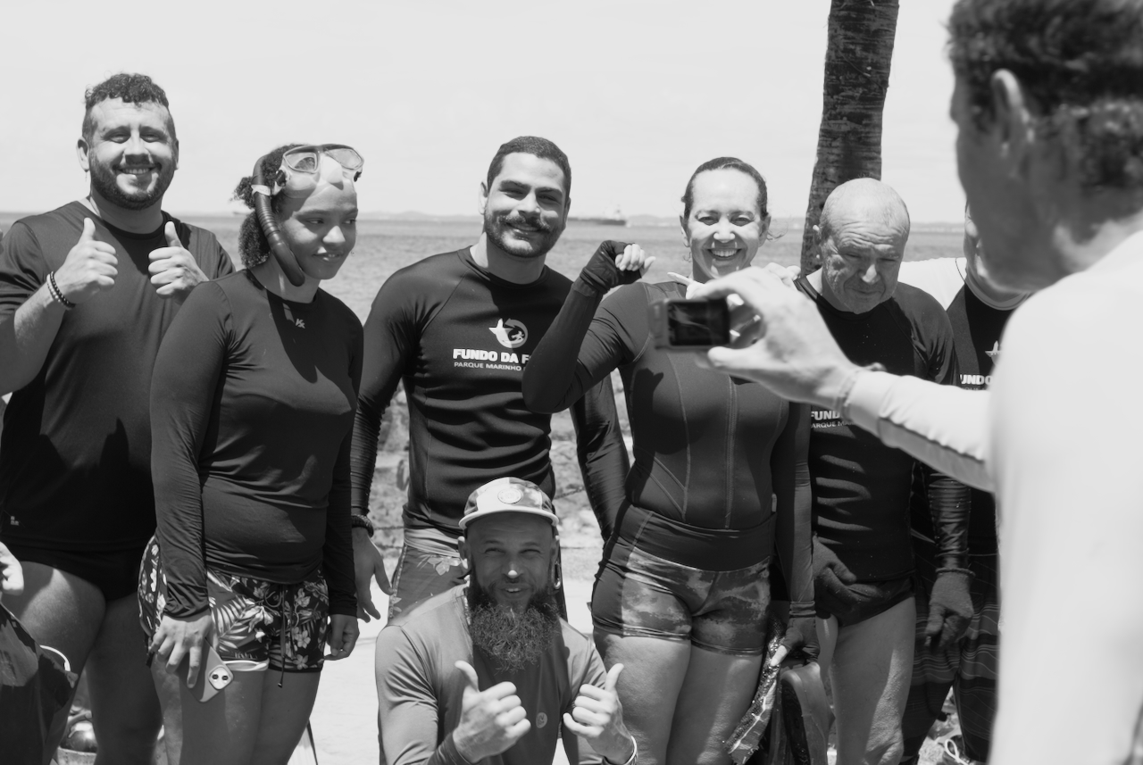Quando a claridade da água está propícia, o grupo se reúne em busca do lixo urbano desprezado no mar. Em pouco mais de uma hora de mergulho, a trupe sempre retorna com milhares de ítens que poluem a baía.